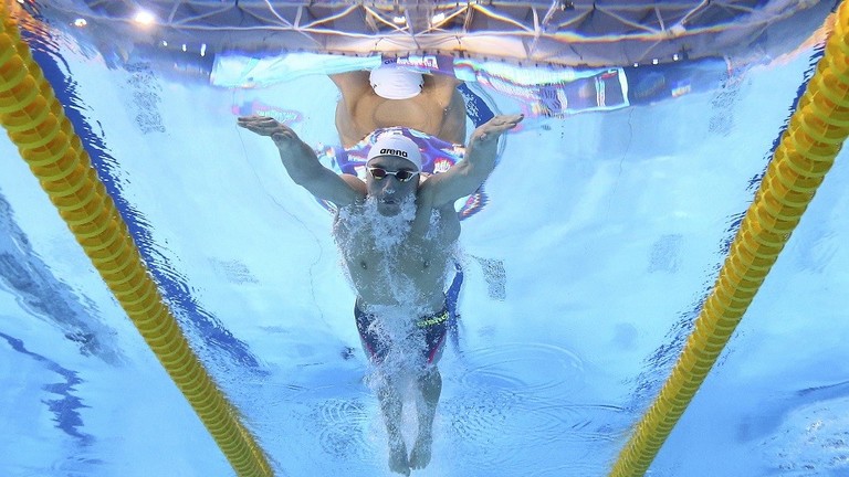 وحطم السباح البالغ 19 عاما الرقم القياسي السابق الذي سجله الأمريكي، مايكل فيلبس، والذي بلغ دقيقة واحدة و51.51 ثانية، في بطولة العالم 2009. "رويترز" |