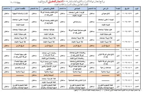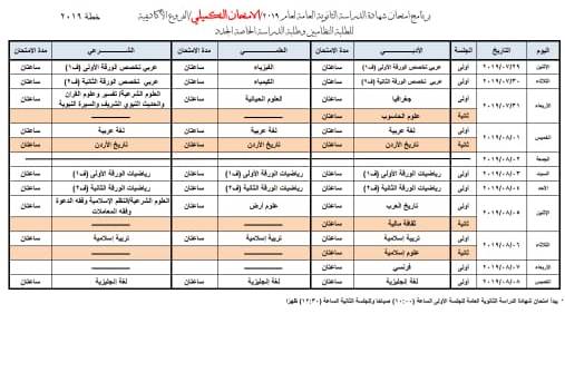 عمون- أعلنت وزارة التربية والتعلم جدول امتحان شهادة الدراسة الثانوية العامة لعام 2019 / الامتحان التكميلي لجميع الفروع الأكاديمية والمهنية. |