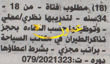 مطلوب موظفة حجز تذاكر طيران