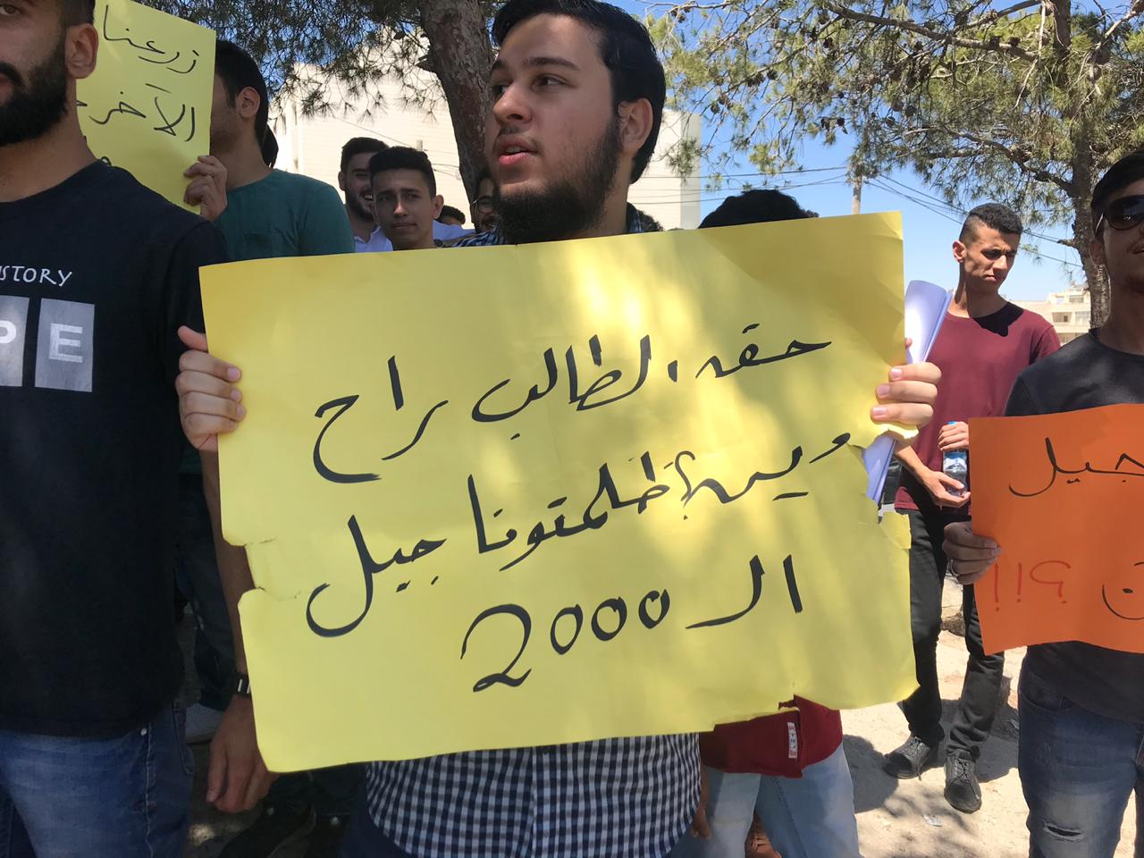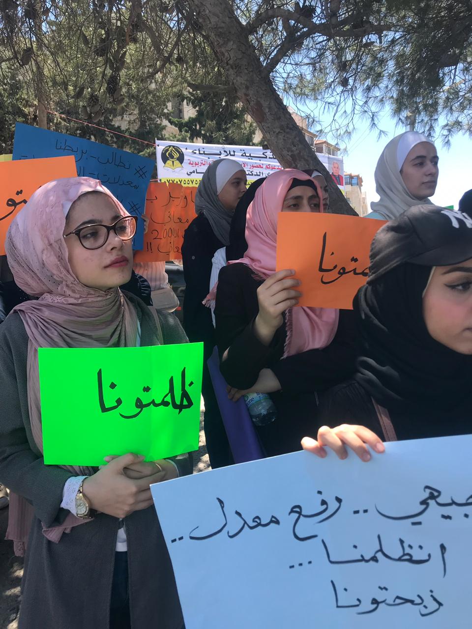 واعتصم العشرات من طلبة التوجيهي المعيدين من مواليد الـ2000، بدعوة من الحملة الوطنية من أجل حقوق الطلبة "ذبحتونا"، صباح اليوم أمام وزارة التعليم العالي تحت شعار "ظلمتونا".