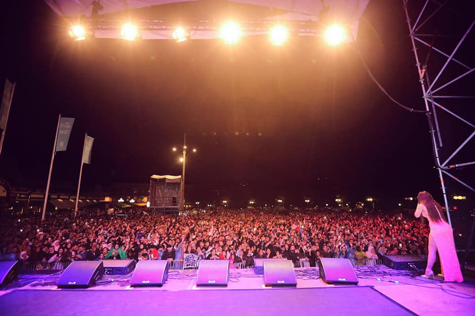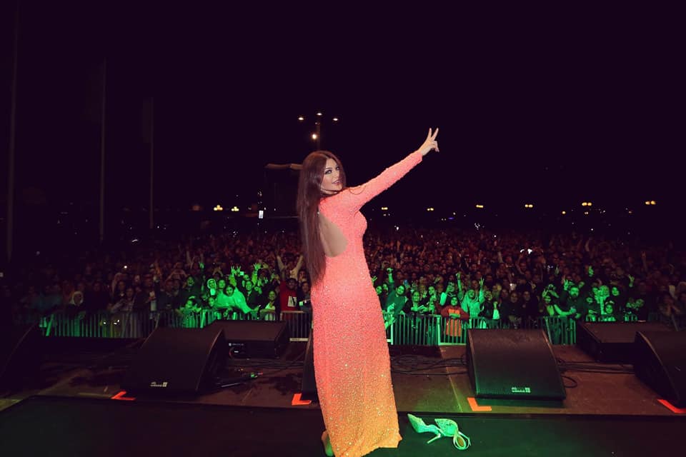 وكانت هيفاء وهبي قدمت في الحفل أشهر أغنياتها القديمة والجديدة، ثم ما لبثت أن خلعت حذائها لانزعاجها منه، الأمر الذي أثار حماسة الجماهير المحتشدة.