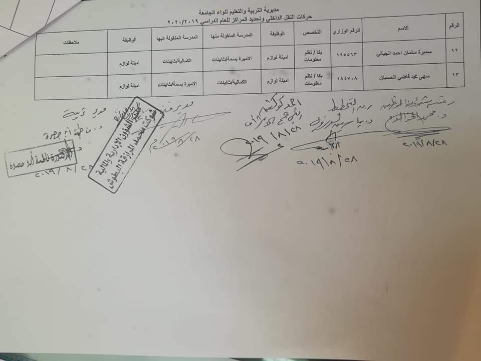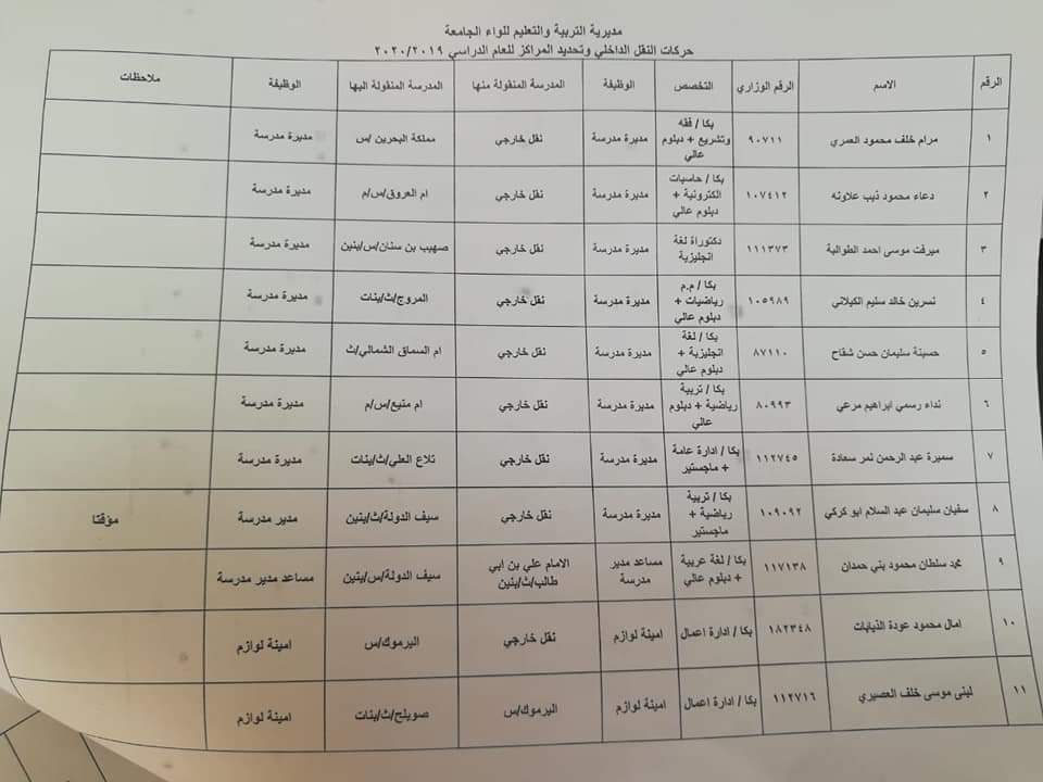 مناقلات داخلية في تربية لواء الجامعة في عمان(اسماء)28-08-2019 07:42 PM