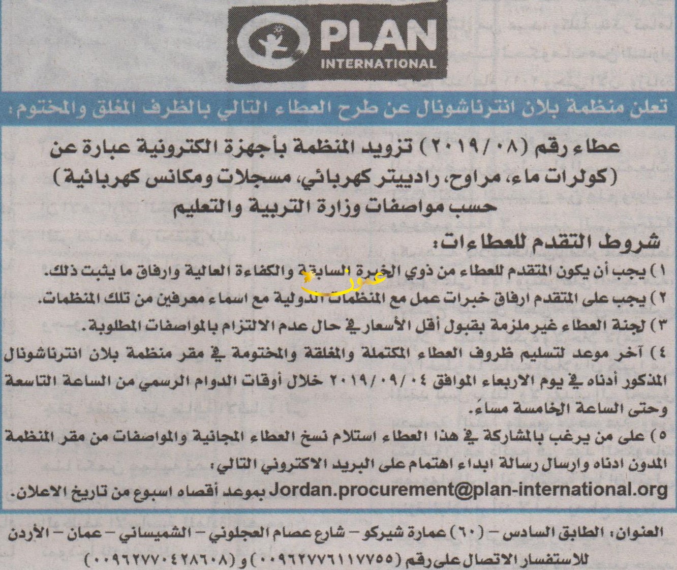 مطلوب شراء اجهزة الكترونية -منظمة بلان انترناشونال