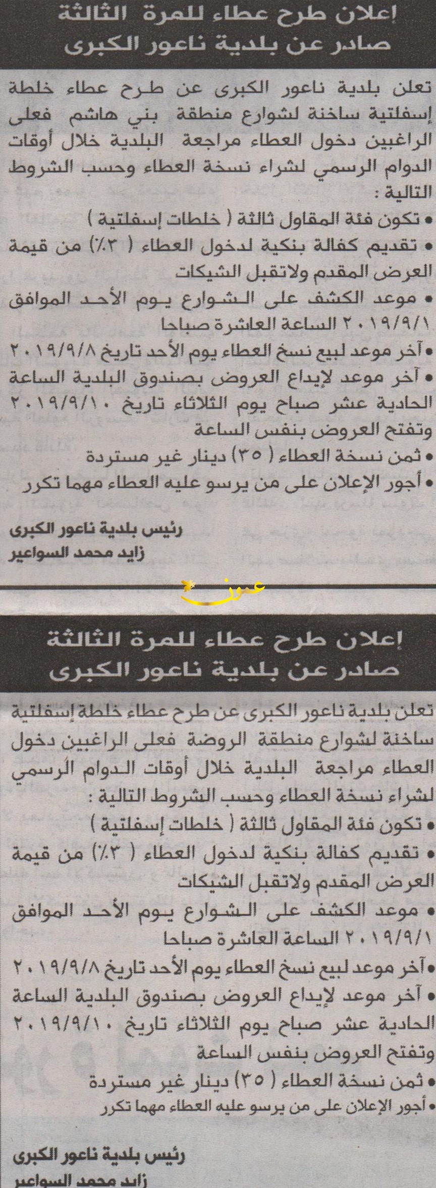 مطلوب توريد خلطة اسفلتية لشوارع بلدية ناعور