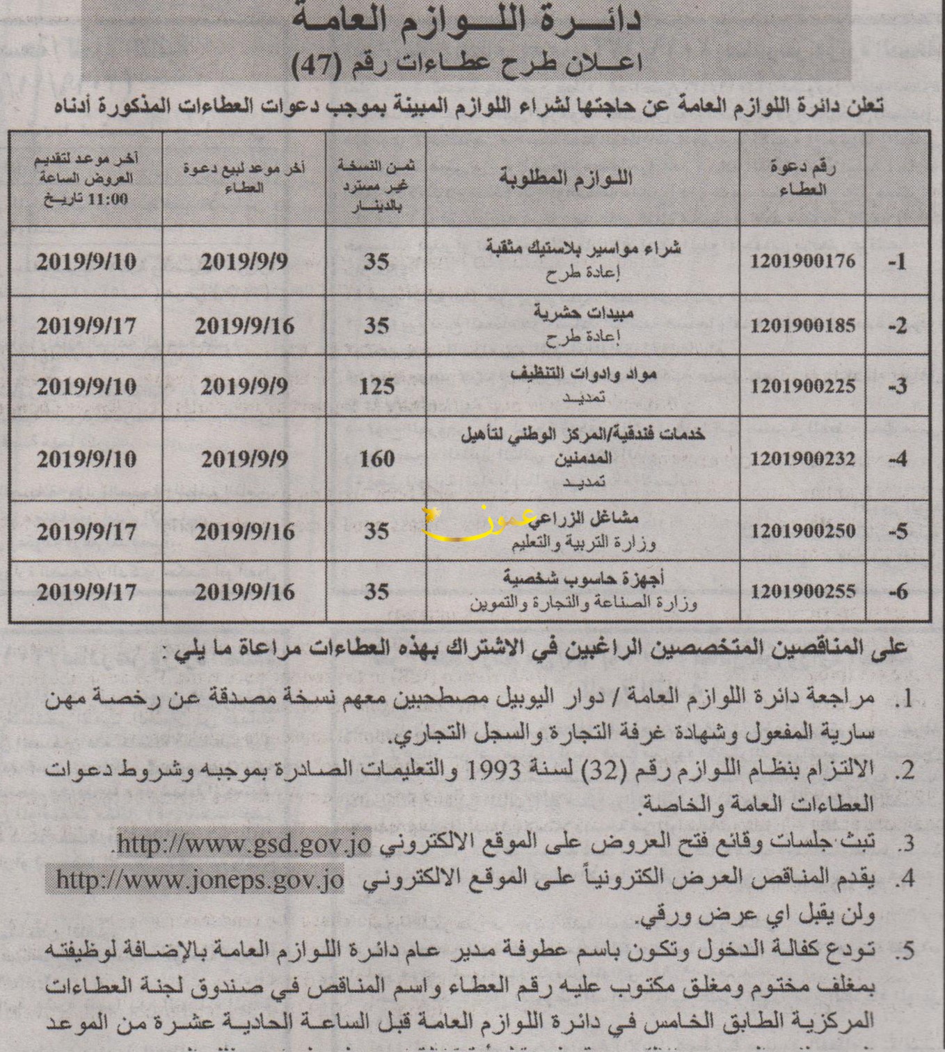 مطلوب شراء مواد تنظيف - دائرة اللوازم العامة