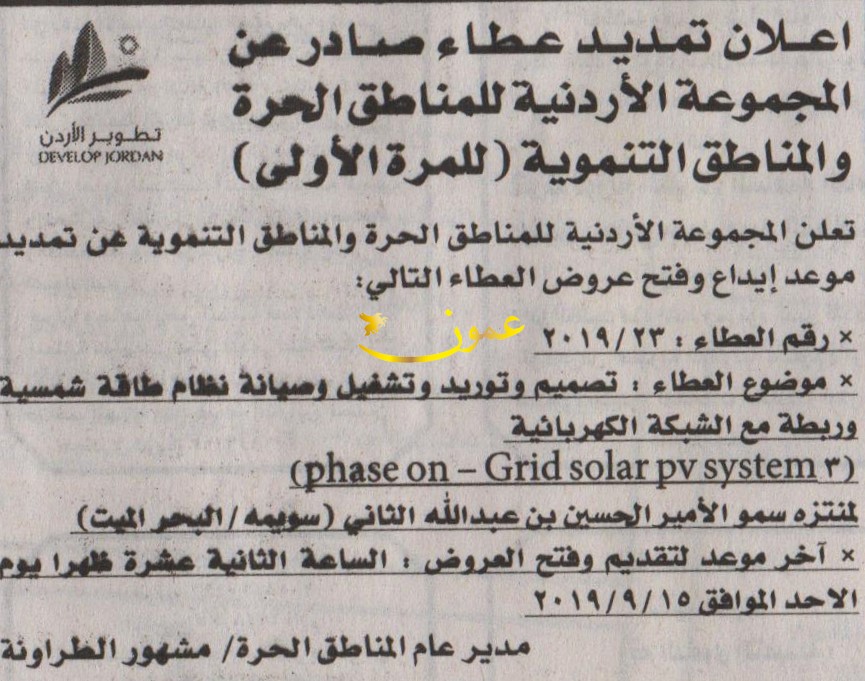 مطلوب تركيب نظام الطاقة الشمسية -المجموعة الاردنية للمناطق الحرة