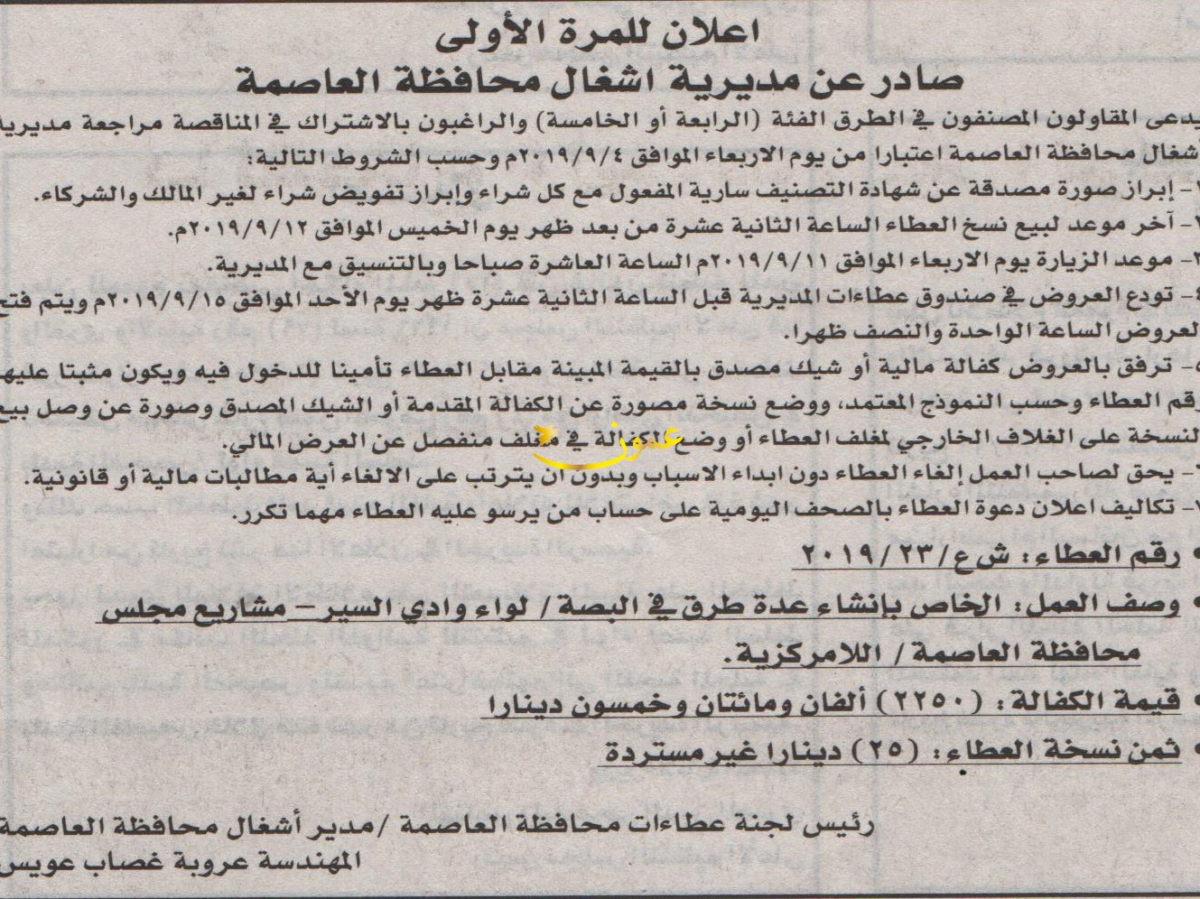مطلوب انشاء عدة طرق - البصمة -وادي السير -اشغال العاصمة