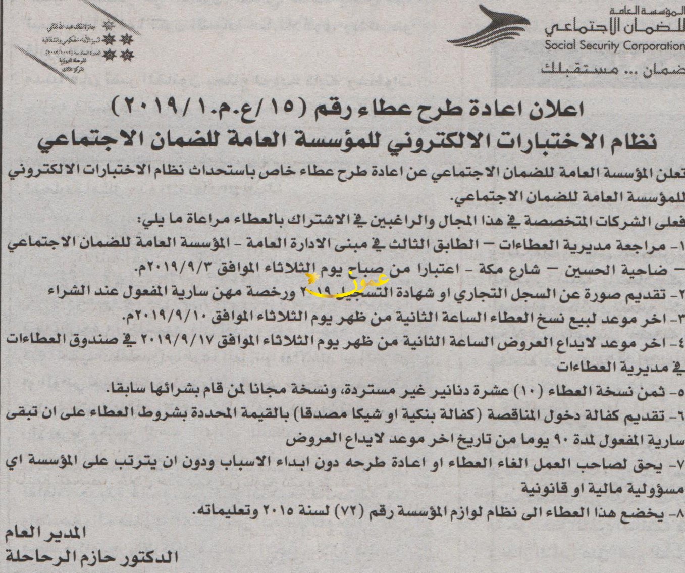 مطلوب توفير نظام الاختبارات الكترونية - مؤسسة الضمان الاجتماعي