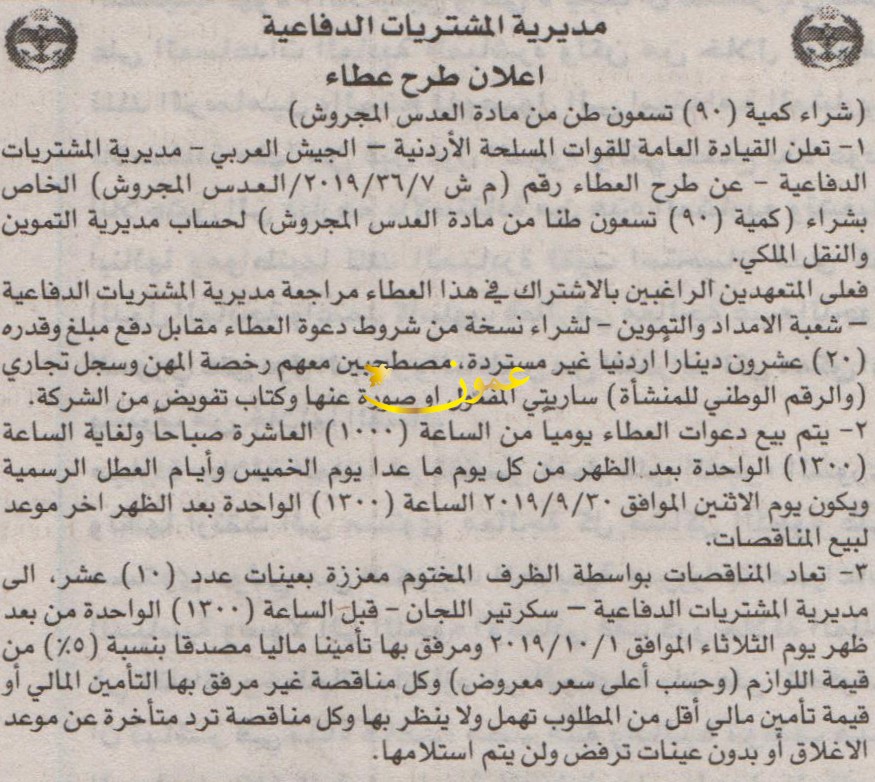 مطلوب شراء "90" طن من العدس المجروش - القيادة العامة