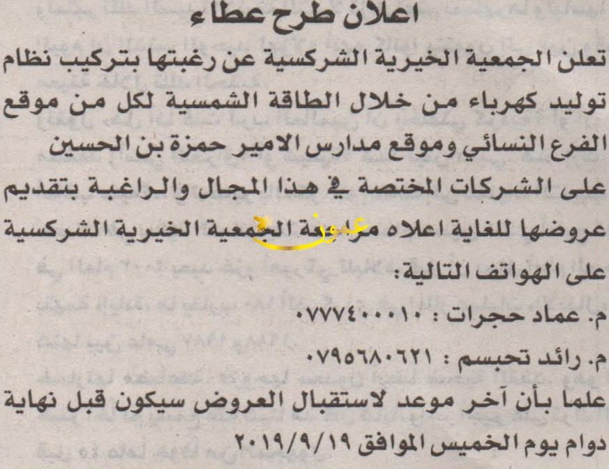 مطلوب تركيب نظام الخلايا الشمسية لتوليد الكهرباء -الجمعية الخيرية الشركسية