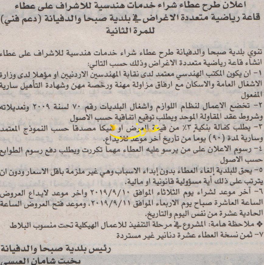 مطلوب شراء خدمات هندسية - بلدية صبحا والدفيانة