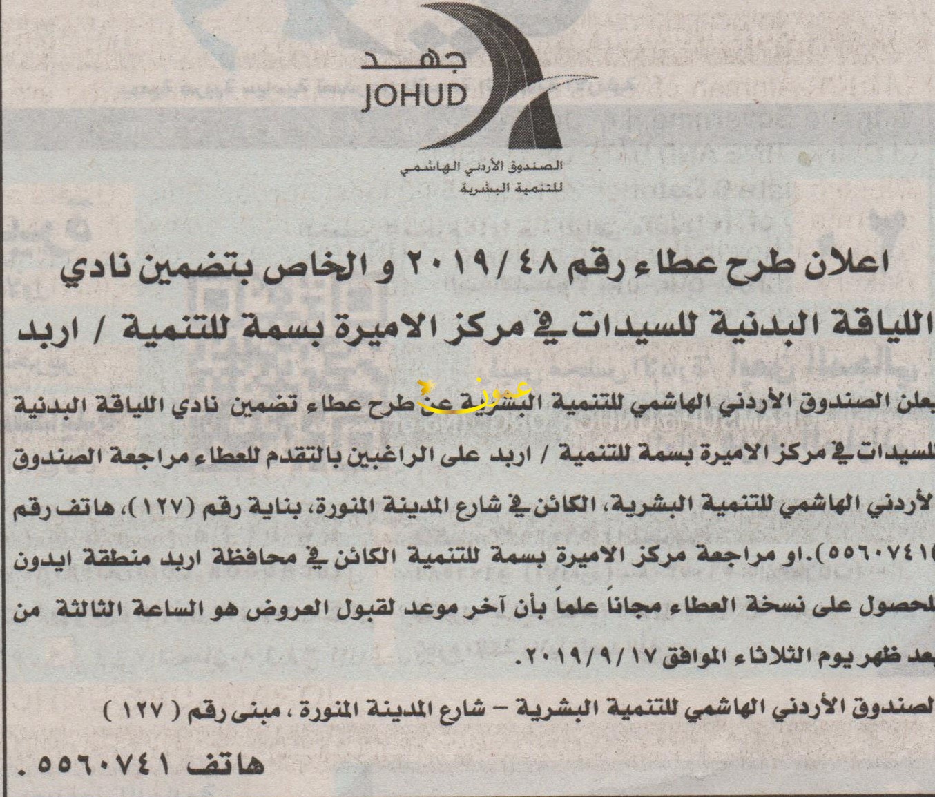 مطلوب تضمين نادي لياقة بدنية -مركز الاميرة بسمة للتنمية