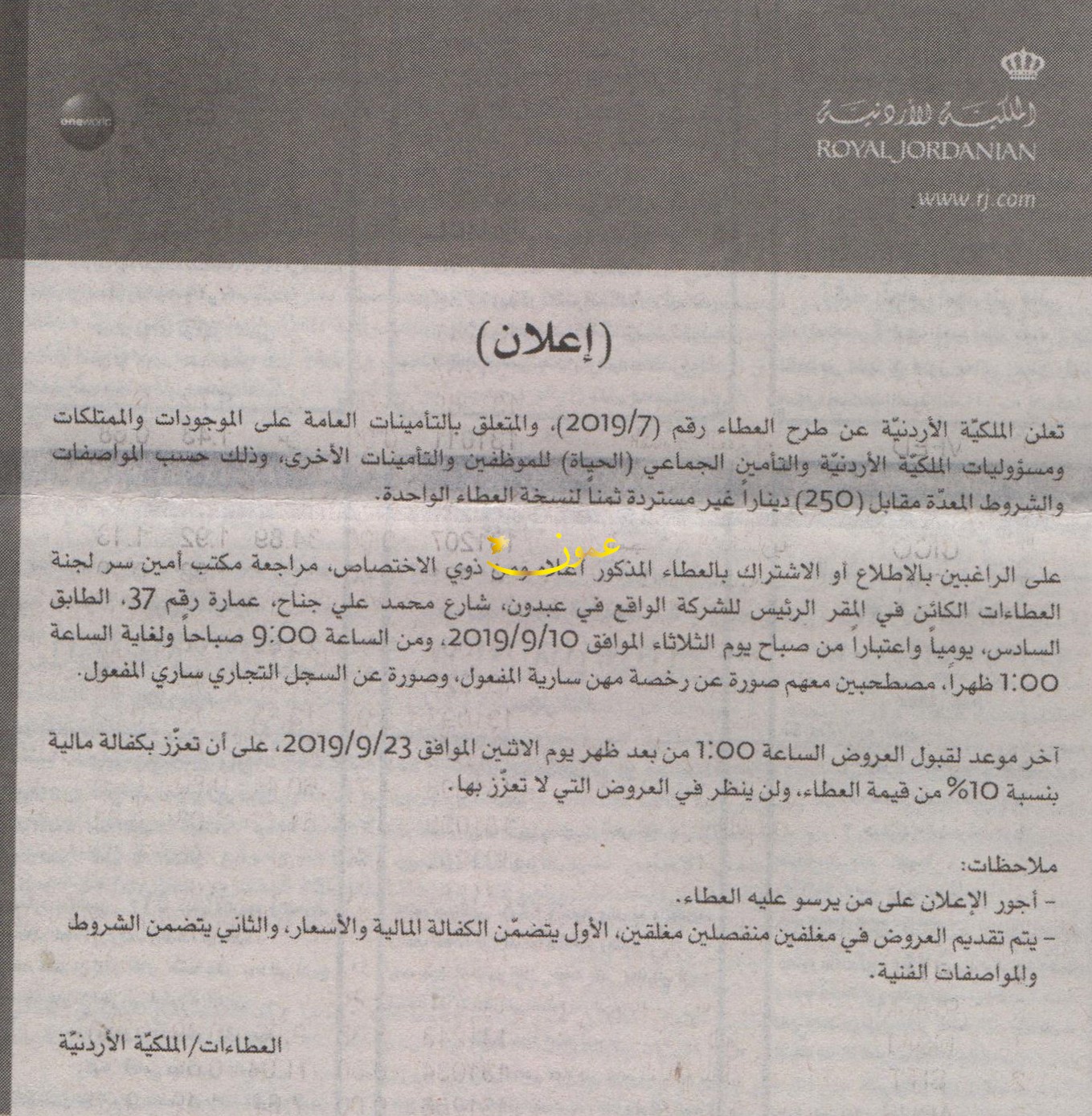 مطلوب توفير التأمين الجماعي لموظفي الملكية الاردنية