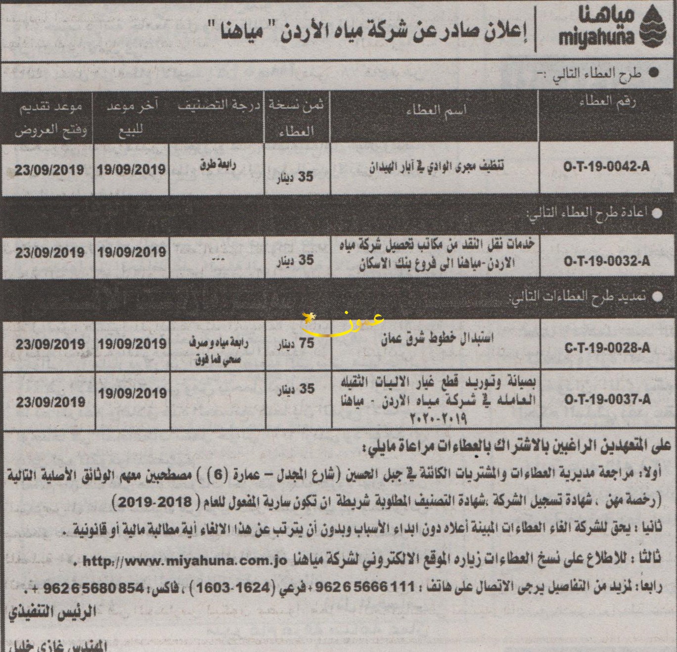 عطاءات صادرة عن شركة مياه الاردن "مياهنا"