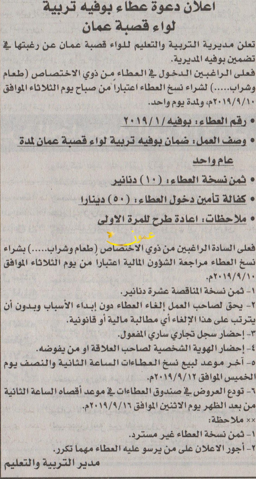 مطلوب تضمين بوفيه - تربية لواء قصبة عمان
