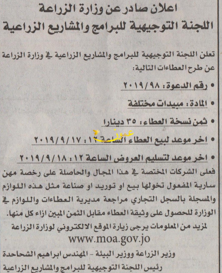 مطلوب شراء مبيدات حشرية - وزارة الزراعة