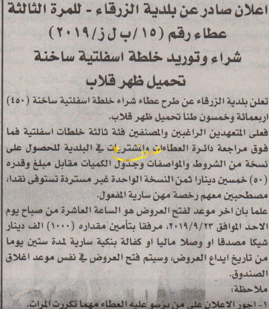 مطلوب شراء خلطة اسفلتية - بلدية الزرقاء