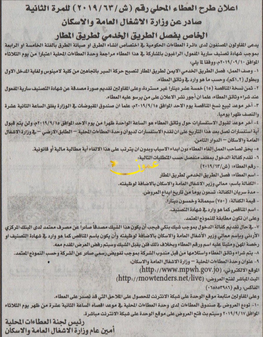 مطلوب فصل الطريق الخدمي لطريق المطار -وزارة الاشغال
