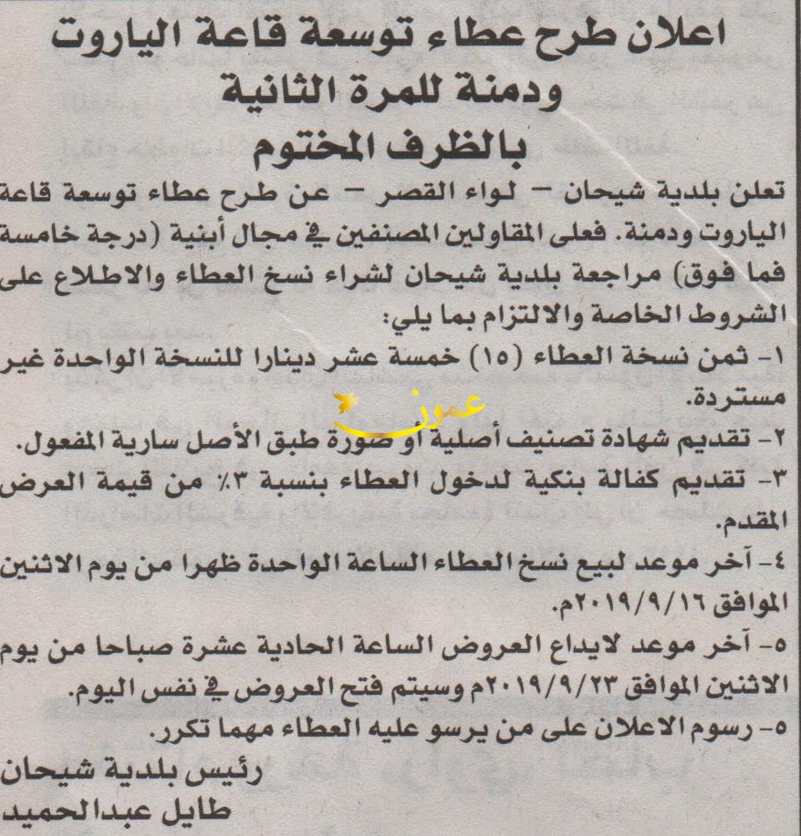مطلوب توسعة قاعة الياروت ودمنة - بلدية شيحان