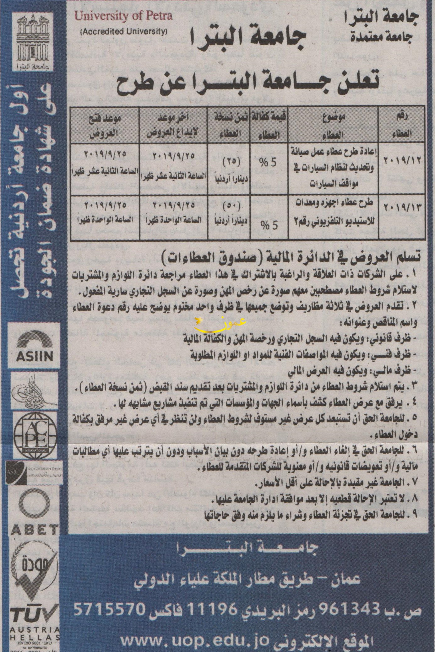 مطلوب صيانة مواقف السيارات - جامعة البترا