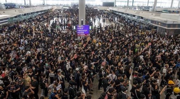 وسبق أن استهدف المحتجون المطار واحتلوا قاعة الوصول وأغلقوا الطرق المؤدية له، وأشعلوا حرائق في شوارع بلدة تونج تشونج القريبة، وأتلفوا محطة المترو بالبلدة.