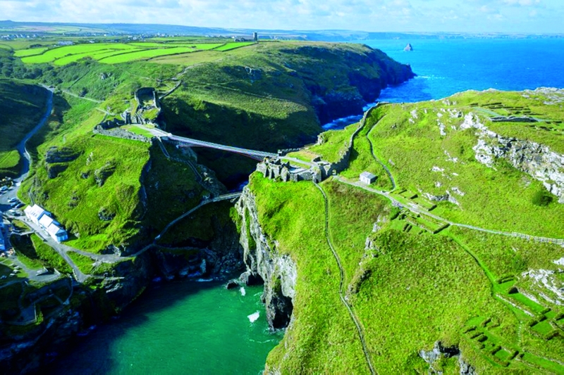 ويمتد جسر قصر تينتاجل للمشاة على ارتفاع يزيد على 58 متراً، ويصل بين شاهقين صخريين وأعادا ربط شقي المنطقة الأثرية ويضمان أقدم قلعتين في بريطانيا. ويذكر أن الجسر الأصلي الذي كان يمتد بين الجزيرة والبرّ الرئيسي قد انهار في فترة ما بين القرنين الخامس عشر والسادس عشر.