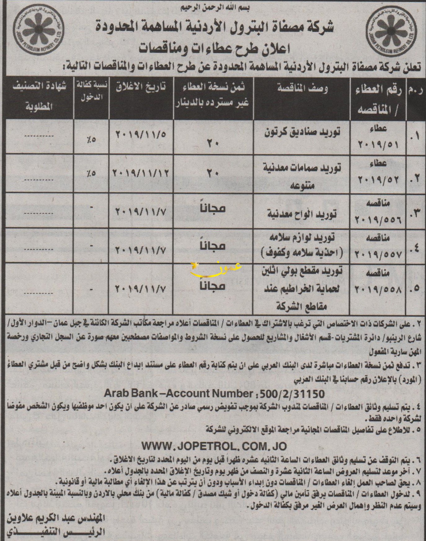 عطاءات صادرة عن شركة مصفاة البترول