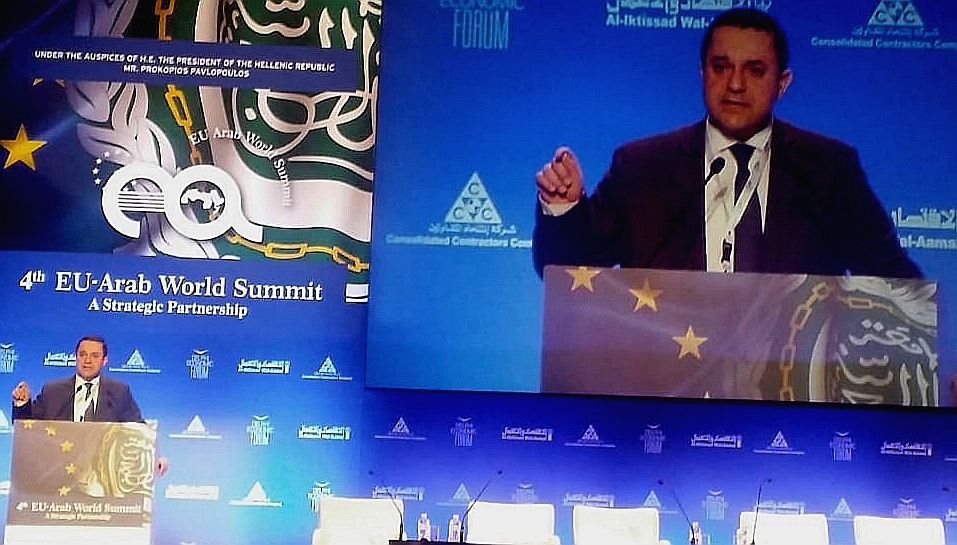 وافتتح القمة رئيس وزراء اليونان وبمشاركة رفيعة المستوى ضمت رؤساء قبرص واليونان، وعدد من رؤساء الوزراء من دول البلقان ونائب رئيس وزراء فلسطين وأمين عام الجامعة العربية، وأمين عام الاتحاد من أجل المتوسط الى جانب المشاركة الواسعة على مدى يومي القمة لعدد كبير من رجال الاعمال وممثلين عن القطاع الخاص من المنطقتين العربية والاوروبية.