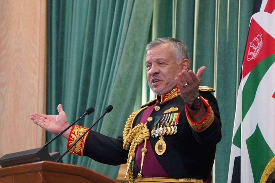 وألقى جلالة الملك عبدالله الثاني خطاب العرش أمام مجلس الأمة، معلنا انتهاء العمل بالملحقين الخاصين بمنطقتي الغمر والباقورة في اتفاقية السلام، وفرض سيادتنا الكاملة على كل شبر منها.