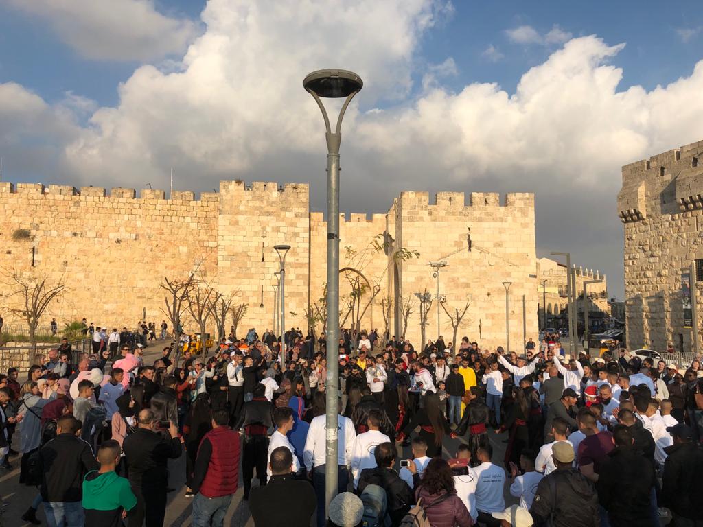 وتوجه المسار بعدها الى ساحة الدباغة مرورًا بحارة النصارى وساحة كنيسة القيامة وبعدها إلى دير الأرمن في منطقة الواد ومن ثم انطلق المسار التراثي الى باب العامود مروراً بشوارع وأزقة البلدة القديمة. وفي باب العامود تم تكرار مشهد حلقات الدبكة والأناشيد الوطنية والتراثية.
