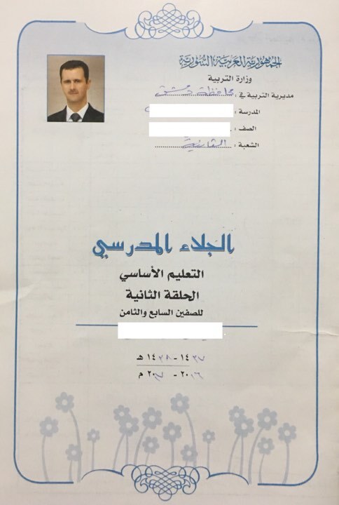 واستمر تقليد وضع صورة الرئيس سواء الراحل حافظ الأسد، أو الحالي بشار الأسد في أعلى يسار الجلاء المدرسي منذ سبعينات القرن الماضي.