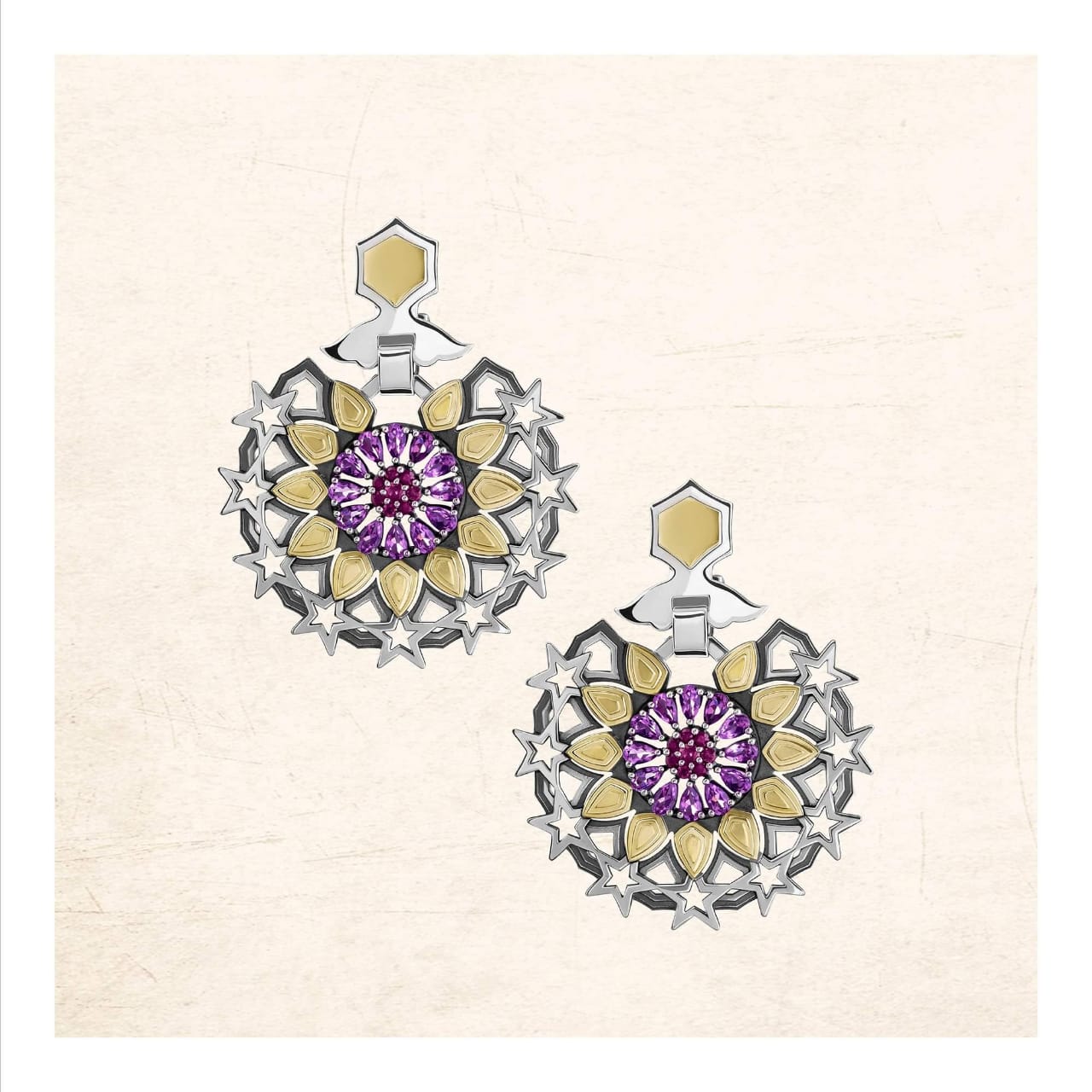 ومن اهم القطع المعروضة نذكر منها على سبيل المثال عقد قاوسون الانيق المحفور بنقوش الارابيسك والنجمة الثمانية , وخاتم شجرة الدر المبهر وطوق قلاوون (سوار قلاوون العريض ) وكذلك الأقراط منها حلق " نجم المماليك " المستدير مستوحى من لوحة الفسيفساء الرخامية الموجودة الآن فى متحف الفن الاسلامى بالقاهرة ويتكون من مجموعة من النجوم ثمانية الشكل يجمعها ببعضها البعض خطوط هندسية وحلق "قلاوون الانيق " من اللؤلؤ يعكس التفاصيل الدقيقة الموجودة بمجمع ضريح السلطان المنصور قلاوون ويضم مجموعة من النجوم ثمانية الشكل التى تشكل حجر الأساس فى العديد من النقوش المستخدمة فى الفن المعمارى لعصر المماليك وحلق "بارسباى" ويمزج بين النجمة ذات الشكل الأثنا عشرى المثلثة مع مجموعة من النقوش الهندسية المستوحاة من جانب احدى المنابر الخشبية الموجودة فى "خانكاة" السلطان الاشرف بارسباى .