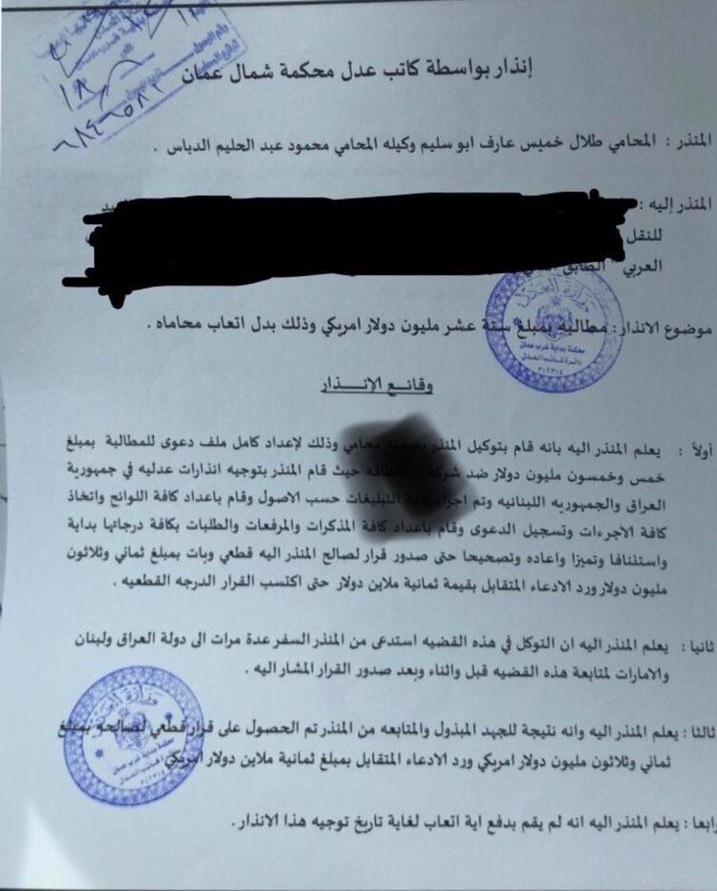 عمون - باشر المحامي طلال خميس ابوسليم إجراءات إقامة الدعاوى للمطالبة بمبلغ 16 مليون دولار بدل أتعاب محاماة عن قضية واحدة. |