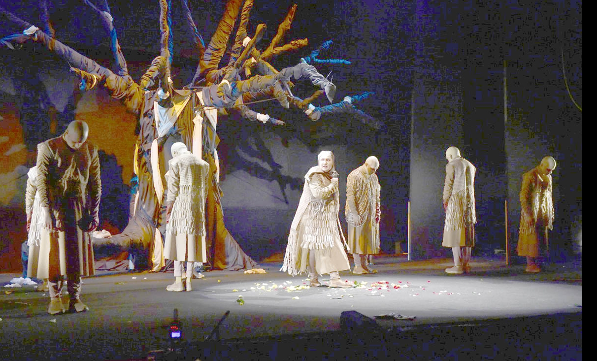 ورغم ان العرض المسرحي شابه بعض الاطالة والتكرار والثبات في خطه وبنائه الدرامي للحكايا السبع وغياب لحظة الذروة والرابط بينها الا ان المخرج وفق في توظيف مختلف عناصر السينوغرافيا بشكل متميز من مؤثر موسيقي وإضاءة واكسسوارات وازياء وكتل ديكورية لاسيما الشجرة الجافة وخالية الاوراق التي تموضعت في منتصف عمق الخشبة ونزفت رملا من غصونها في ختام العرض لتدفن شخصياته.