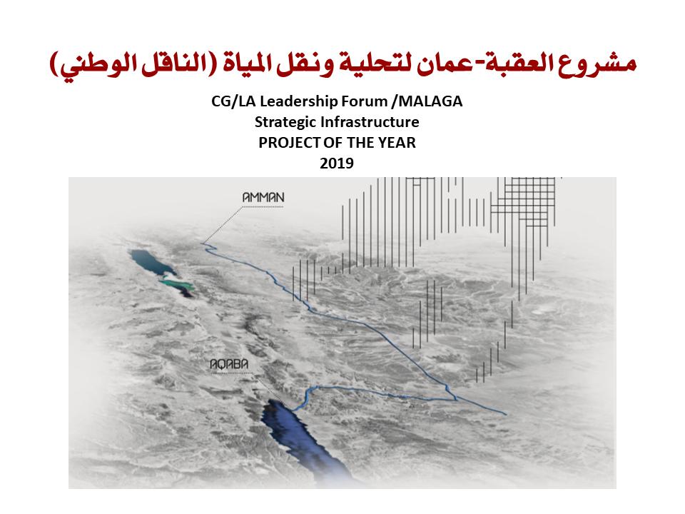 واضاف ان هذا المشروع الاستراتيجي يلقى اهتماما عالميا كبيرا خاصة وانه لم يتبق للاردن بدائل للتزود بمصادر مائية امنة ومستدامة من داخل الحدود الوطنية الا عبر تحلية مياه البحر الاحمر ونقلها الى المحافظات المختلفة لتعويض الارتفاع المتزايد في الطلب على المياه مبينا ان المشروع حاز على افضل مشروع استراتيجي بعد تنافسه مع اكثر من 100 مشروع عالمي قدمت خلال اعمال المنتدى الذي يعد ملتقى لقيادات البنى التحتية في مناطق جنوب وشرق المتوسط ( اوراسيا ) SEMED وعقد في ملقا حيث انه اصبح محط اهتمام الشركات العالمية المشاركة في هذا المنتدى المعنية بتطوير وتنفيذ اعمال البنى التحتية .