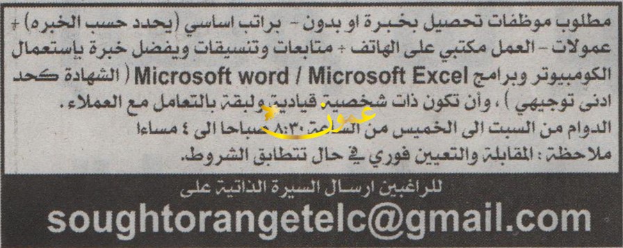 مطلوب موظفات تحصيل