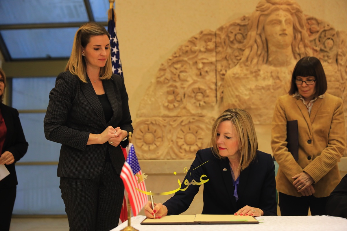 ووقع الاتفاقية نيابة عن الأردن مدير عام دائرة الآثار العامة يزيد عليان وعن الحكومة الأمريكية مساعد وزير الخارجية الأمريكي للشؤون التعليم والثقافية ماري روي.