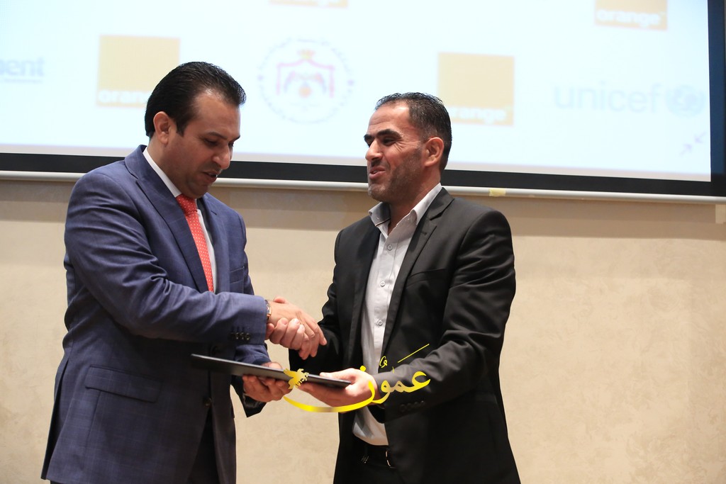 عمون - كرّمت وزارة التربية والتعليم بالتعاون مع منظمة الأمم المتحدة للطفولة (اليونيسف) و"Orange" الأردن اليوم الأربعاء، 21 معلما شاركوا في مشروع "منهاجي التفاعلي" للتعليم الإلكتروني الذي أطلقته الوزارة عام 2016 بالشراكة مع الجانبين وشركة تطوير للتدريب الإلكتروني "e-Learment ".