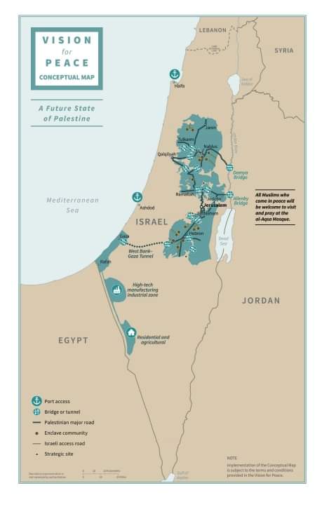عمون - نشر الرئيس الأمريكي، دونالد ترامب، خريطة للدولتين الفلسطينية والإسرائيلية وفق خطة السلام لتسوية الصراع في الشرق الأوسط والتي أعلنها اليوم الثلاثاء.