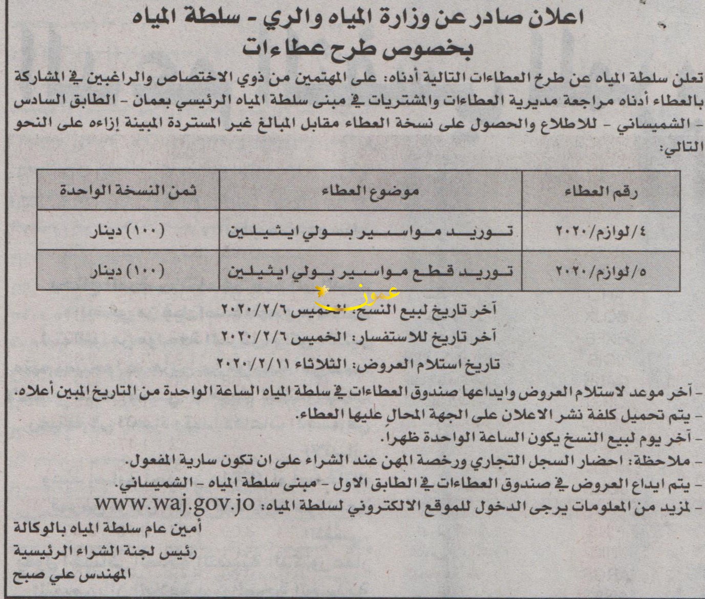 مطلوب توريد مواسير بولي ايثيلين -وزارة المياه والري