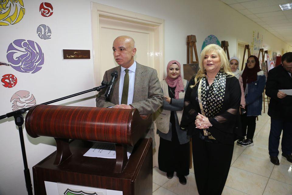 وفي كلمة لمديرة المركز الدكتورة نهاد البطيخي، قالت فيها "إن تنظيم المعرض جاء بتزامن مع عيد ميلاد قائد الوطن جلالة الملك عبد الله الثاني ابن الحسين المعظم، وهو يحاكى قصة نضال الهاشميين ومراحل تطور الأردن، وتأسيس الدولة الأردنية الحديثة، ويبزر دور ومواقف الهاشميين في دعم القضايا العربية، منوهةً إلى أن تنظيم المعرض يمنح الطلبة فرصة الاطلاع على واقع الإنجازات التي تحققت بفضل رعاية ملوك بني هاشم".