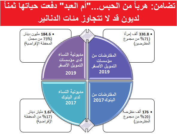 إن تعرضهن للحبس يهدد الأمن المجتمعي ، وينعكس سلباً عليهن وعلى أطفالهن وأسرهن وقد يؤدي الى التفكك الأسري، ويهدد زواجهن ويوصمن اجتماعياً، ومن جهة أخرى فقد يجبرن على أخذ قروض لصالح أزواجهن أو أحد أفراد الأسرة وبالتالي يقعن ضحية للعنف الاقتصادي الممارس ضدهن ويصبحن مهددات بالسجن أو أنهن يسجن فعلاُ، نتيجة حصولهن أو إجبارهن على الإقتراض من شركات التمويل الأصغر دون وجود ضمانات كافية .