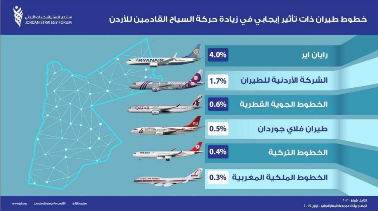 "الاردنية" في المرتبة الثانية بين شركات الطيران بزيادة السياح القادمين