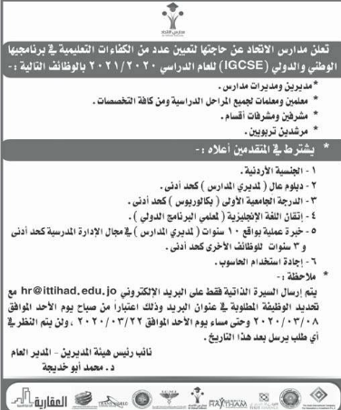 مدارس الاتحاد بحاجة لكادر تعليمي