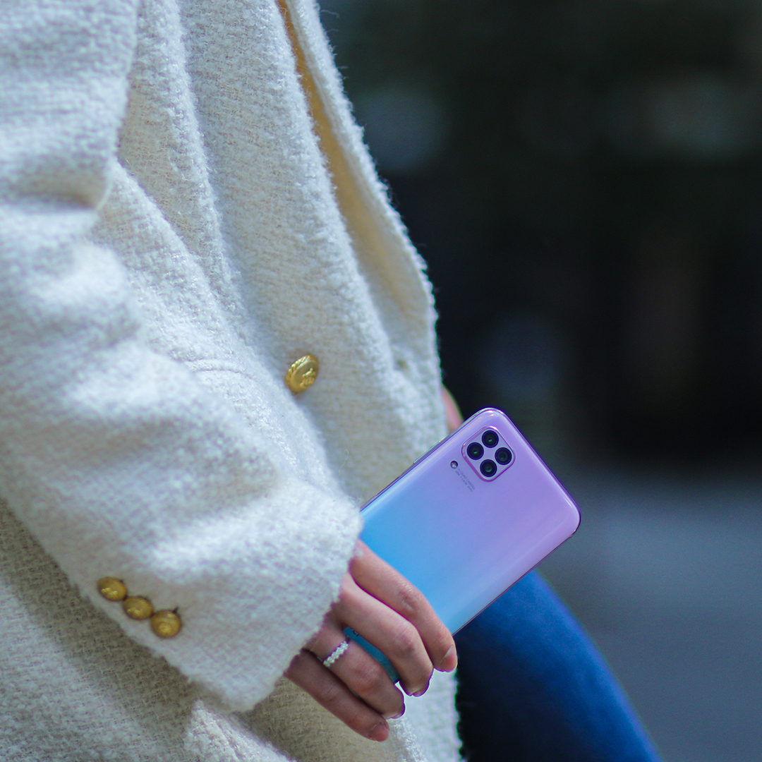 Huawei nova 7i هاتف أنيق وجميل المظهر. وبينما يحتوي الجزء الخلفي من الهاتف على تصميم ثلاثي الأبعاد جميل مع تدرج فريد من نوعه، ما يلفت انتباهك حقًا شاشة Huawei Punch FullView FHD+ الضخمة قياس 6.4 بوصة، والتي تدعم دقة 2310×1080. وتأتي هذه الشاشة الرائعة بتدرج لوني واسع النطاق ونسبة شاشة إلى الجسم عالية تصل إلى 90.6% لتجربة مشاهدة غامرة، بالإضافة إلى المساهمة في هوية الهاتف الأنيقة والفريدة. ويأتي هاتف Huawei nova 7i بثلاثة ألوان جميلة هي ساكورا الوردي (Sakura Pink)، والأخضر المشرق (Crush Green)، والأسود الحالك (Midnight Black).