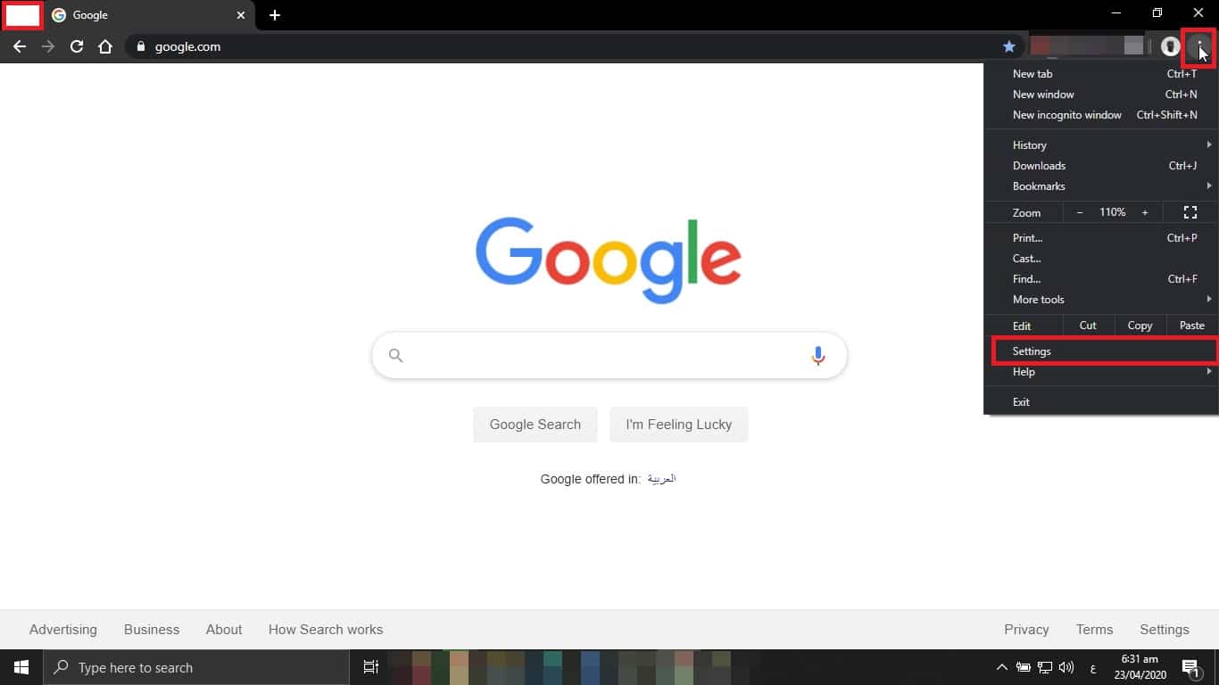 افتح المتصفح، ثم اضغط على أيقونة القائمة في أعلى الجهة اليمنى من الشاشة.