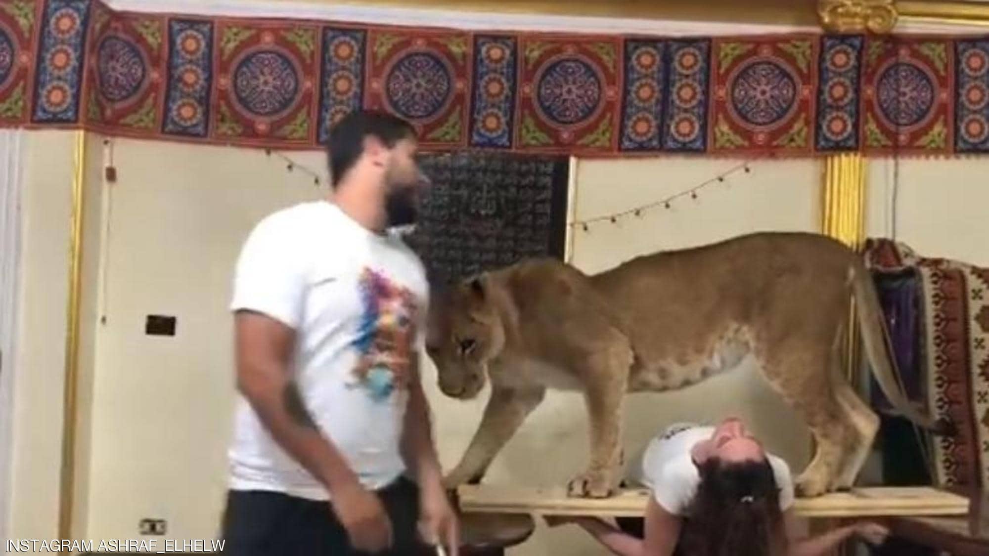 عمون - نشر مدرب الأسود المصري أشرف الحلو مقطعا مصورا على حسابه في "إنستغرام" وهو يقوم بتدريب لبؤة داخل شقته في القاهرة.