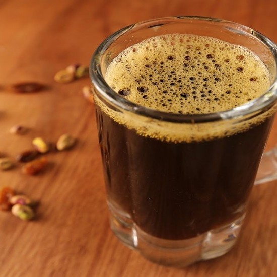 ويحتاج هذا إلى 400 غ من بودرة عرق السوس، ملعقة صغيرة من بيكربونات الصوديوم وكوب من ماء الشرب.