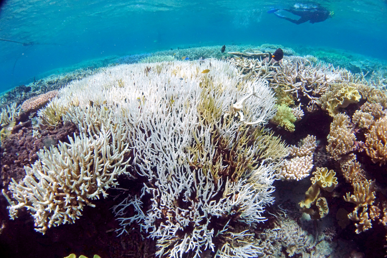 وفي ظل أزمة تغير المناخ العالمية وبسبب حرارة المياه المرتفعة باتت الشعاب المرجانية عرضة لزوال ألوانها الزاهية وتغير لونها إلى الأبيض، مما يفقدها جمالها البهيج الأخاذ، كما يؤثر سلبا على دورها الحيوي في البيئة البحرية.