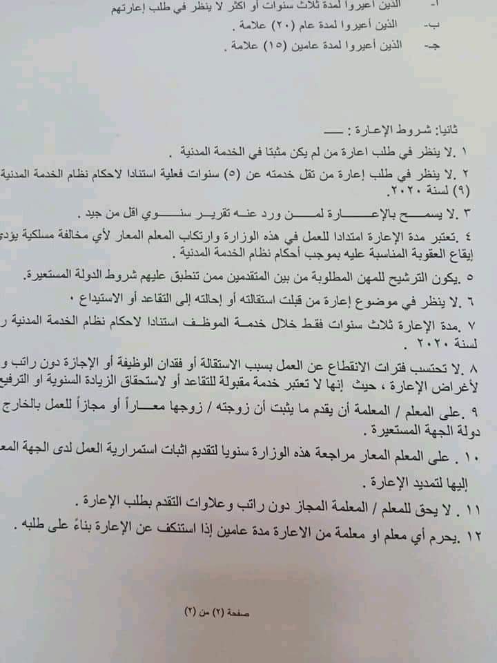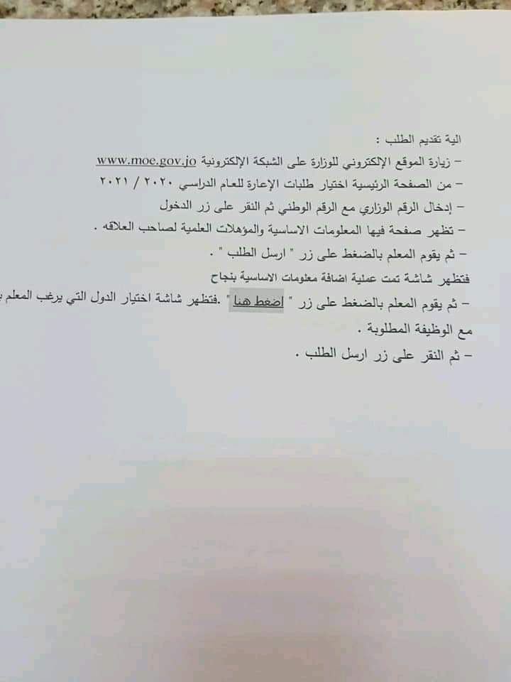 وبينت الوزارة في كتاب تم تعميمه على مدارء الادارت والتربية والتعليم الية تقديم الطلب للراغبين كالتالي: